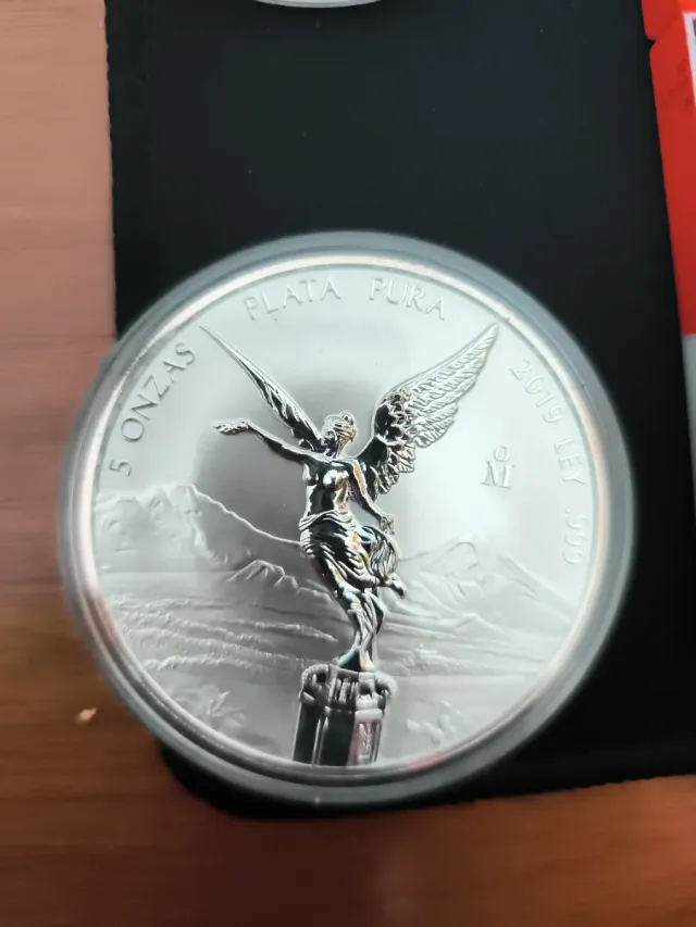 Moneda de plata mexicana de 5 onzas del año 2019. Brillo espejo