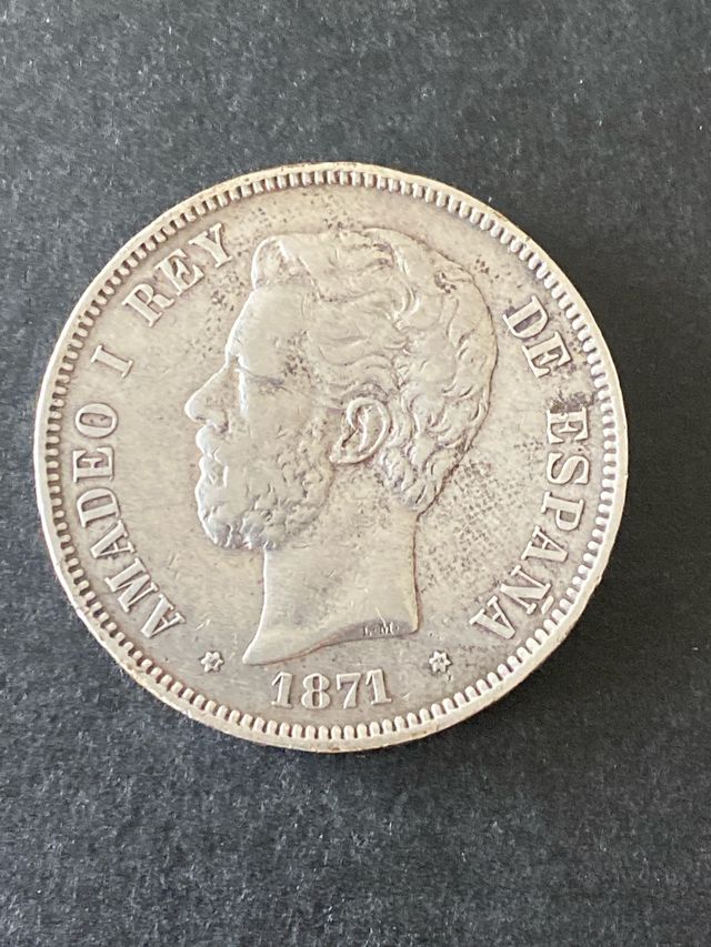 Moneda de plata de Amadeo I, Rey de España. Emisión de 1871 con estrella 74. Las dos visibles