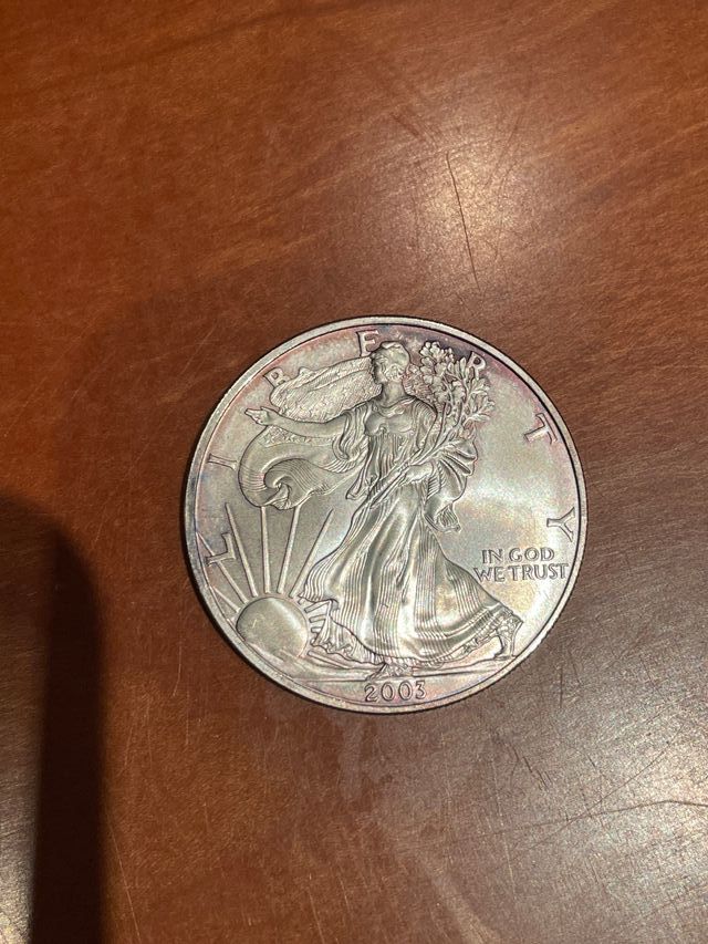 Detalles del productoMoneda de plata pura de 1 onza tipo American Silver Eagle (2003).