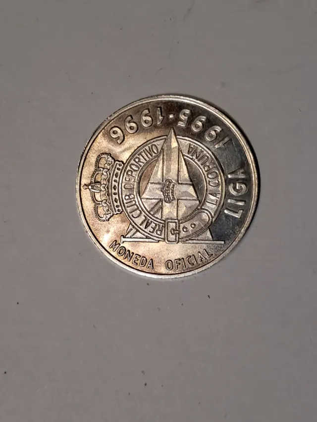 Detalles del productoMoneda conmemorativa del Real Club Deportivo de La Coruña, correspondiente a la temporada 1995-1996.