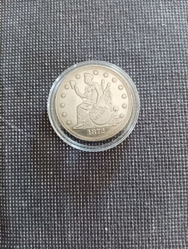 Moneda de plata conmemorativa. - Diseño de la Libertad sentada. - Año: 1872. - Borde con estrellas.