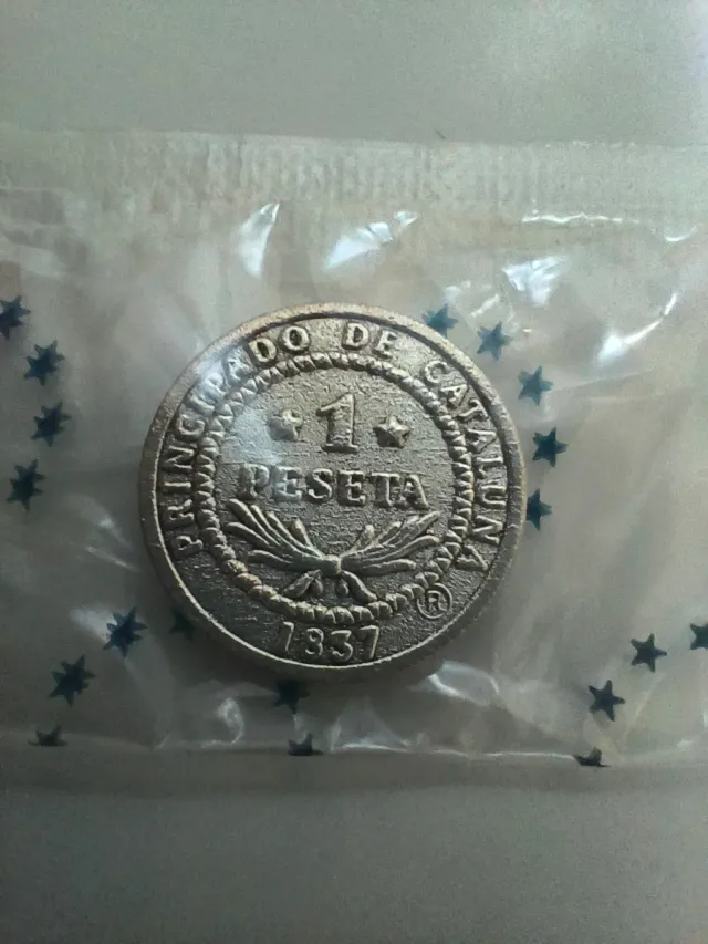 Detalles del producto Reproducción histórica “1 Peseta 1837 – Principado de Cataluña – Isabel II”