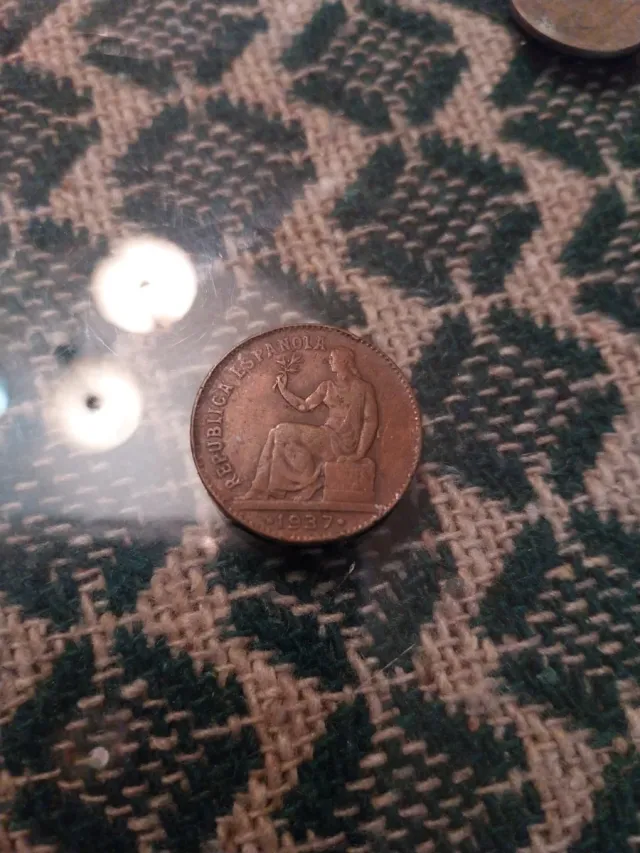 Moneda conmemorativa de la República Española del año 1937. Presenta un diseño detallado con una figura sentada. - Año: 1937 - Inscripción: República Española