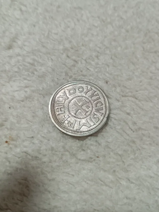 Moneda antigua con inscripciones.