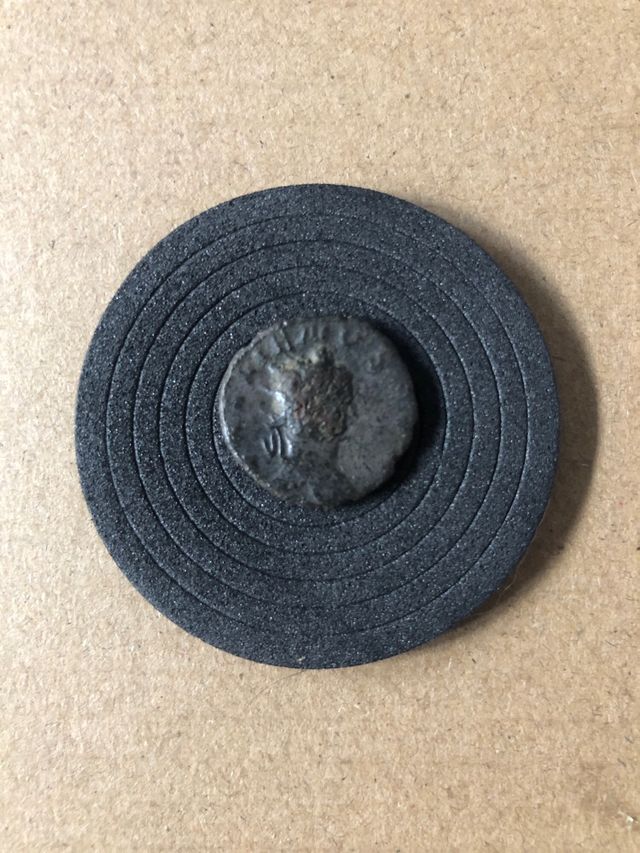 Moneda romana antigua del emperador Galieno.253-268 d.C. GALIENVS AVG / IOVIS STATOR