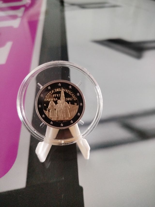 Moneda conmemorativa de Ciudad del Vaticano. - Diseño dedicado a Fátima. - Año: 1917-2017. - Presentada en cápsula protectora.