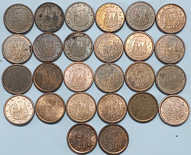 Monedas de 1 céntimo de euro del año 1999 hasta 2024 todas de España 26 monedas de colección acepto ofertas