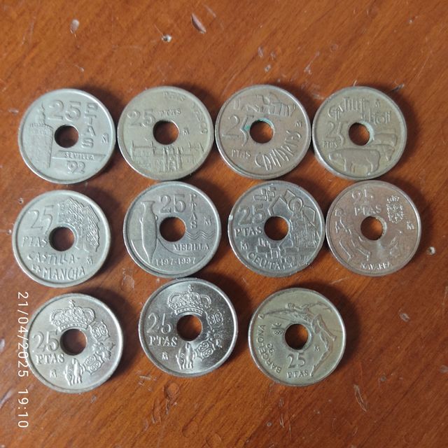 Monedas de 25 pesetas con agujero de distintas comunidades. El precio es por todas. Individualmente pedir precio