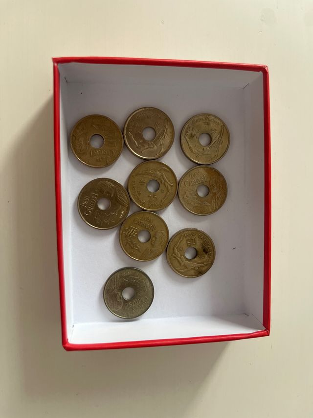 Lote de 9 monedas de 25 pesetas de Barcelona, año 1990. - Monedas conmemorativas. - Diseño de la ciudad de Barcelona. Se puede vender junto o separado