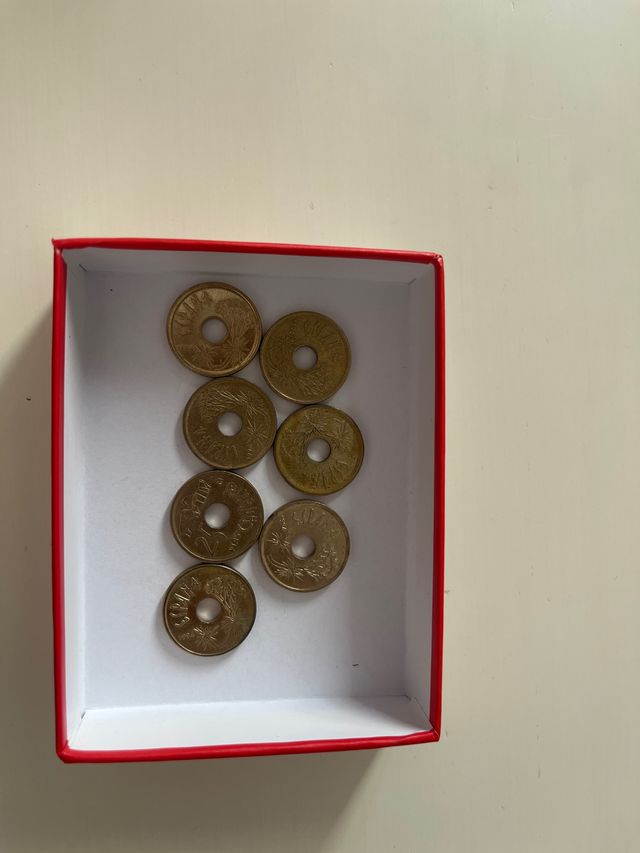 Conjunto de 7 monedas de 25 pesetas de Canarias. - Diseño con motivos canarios. - Monedas de colección. Se venden juntas o por separado