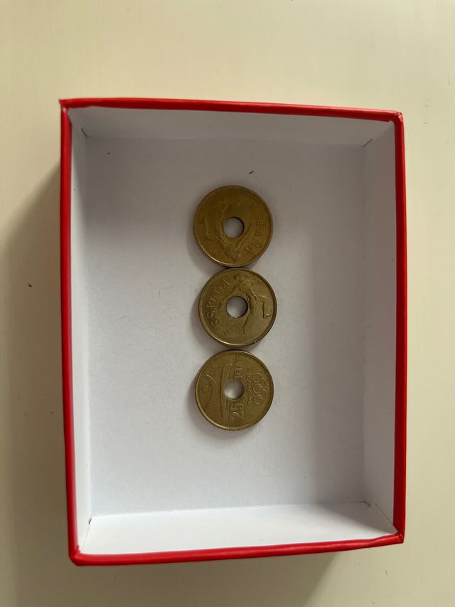 Detalles del productoConjunto de tres monedas de 25 pesetas conmemorativas de los Juegos Olímpicos.