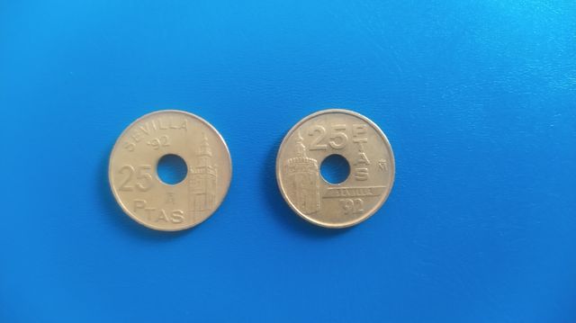 Monedas 25 pesetas Sevilla 1992.