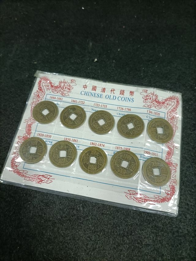 Detalles del productoJuego de 10 monedas antiguas chinas. Se aprecian detalles interesantes en cada pieza. Son monedas antiguas de colección, ideales para aficionados a la numismática. Desde 1664 hasta 1911