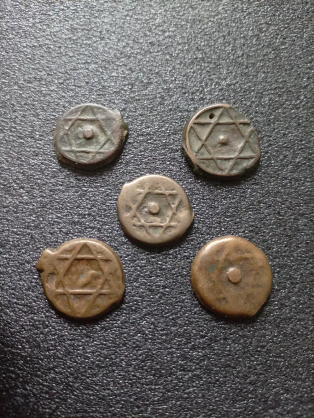 DESCRIPCIÓN: Lote de 5 Felus, antiguas monedas de cobre del sigo XIX. Por ejemplo hay una de 1250 y otra de 1271 que equivalen a 1834 y 1854 respectivamente.