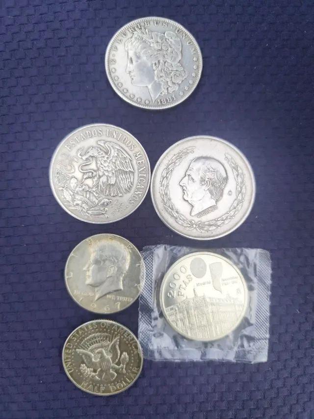 Detalles del productoConjunto de monedas antiguas, algunas de plata.