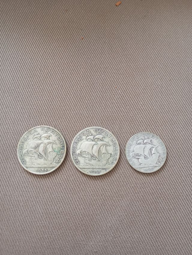 Detalles del productoSe venden tres monedas antiguas portuguesas. Dos son de 10 escudos y una de 5 escudos. Las monedas muestran señales de desgaste por el paso del tiempo, pero se encuentran en buen estado general. - Tres monedas en total - Dos de 10 escudos - Una de 5 escudos