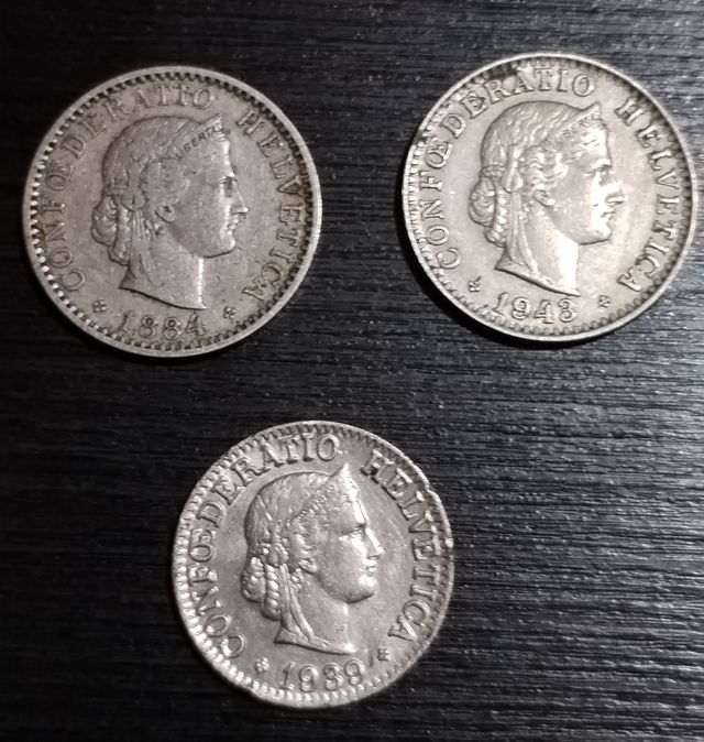 Monedas varias fechas de Confederación Helvética.