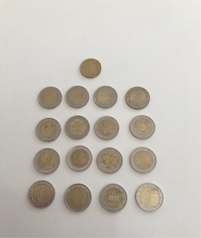 Monedas de 2 euros 1 euro y 50 céntimos