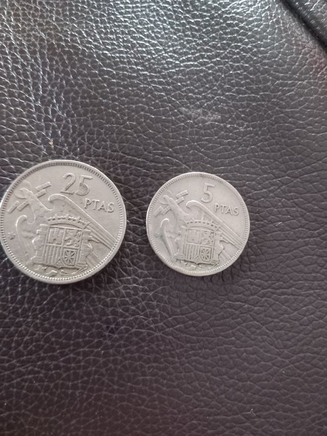 Monedas de 25 y 5 pesetas