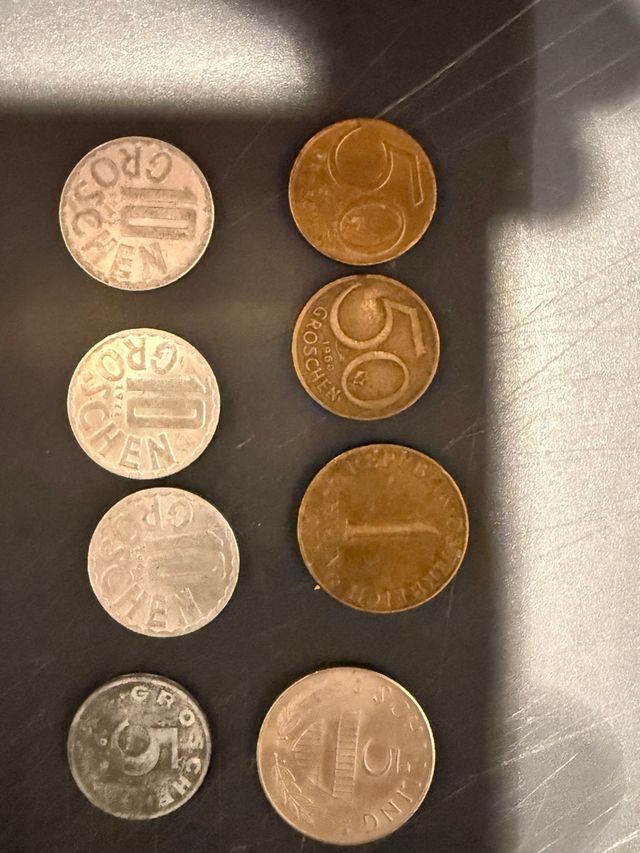 Conjunto de monedas de Austria. - Monedas de 10 Groschen. - Monedas de 50 Groschen. - Moneda de 1 Schilling. - Moneda de 5 Groschen.