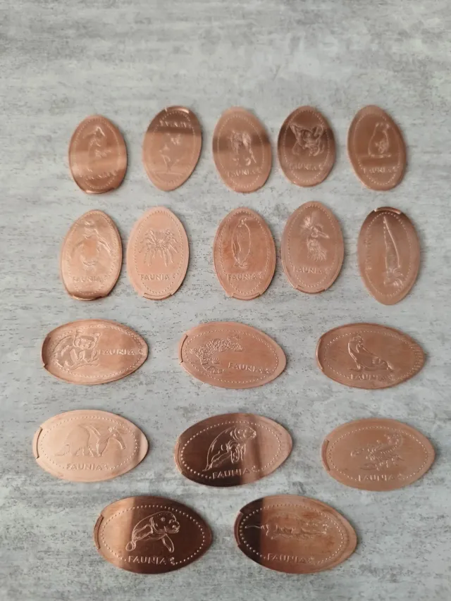 Detalles del productoColección completa de monedas elongadas año 2025 con grabados de animales de Faunia.