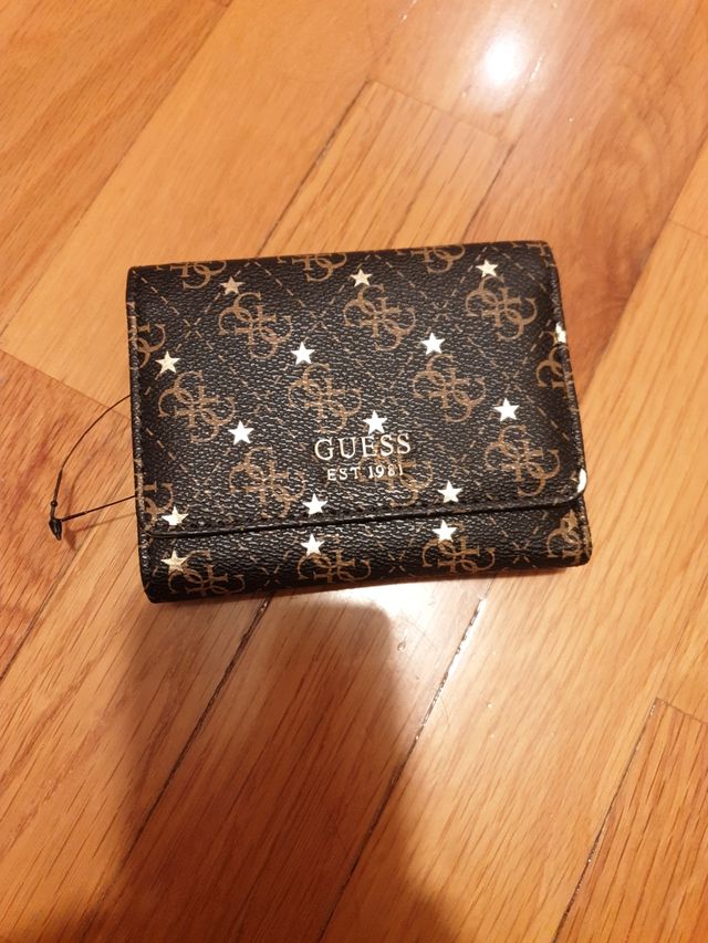 monedero guess original sin estrenar. interior dorado. muy completo y lleno de compartimentos para billetes, monedas , tarjetas... tamaño ideal para el bolso.