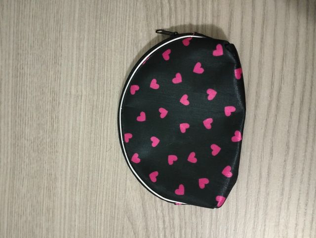 Monedero negro con corazones rosas. En perfecto estado