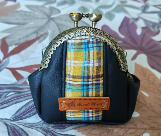 Monedero boquilla redonda tela cuadros