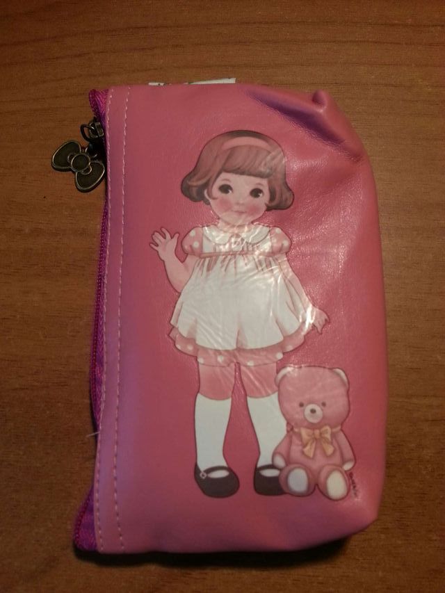 Detalles del productoMonedero con un diseño muy bonito y cuco de un dibujo clásico de una niña,  con cremallera con el detalle de un lacito y totalmente forrado de dentro con ropa de topitos