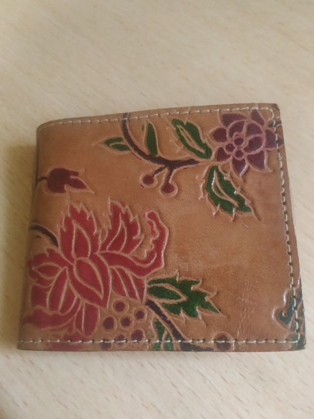 Monedero decorado de cuero,9'5 de largo y 9 de alto