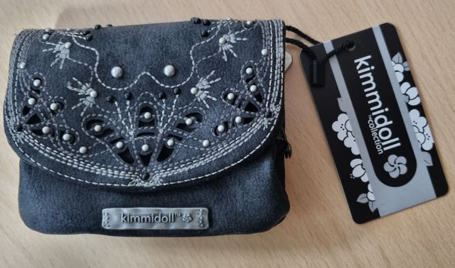 Detalles del productoPequeña cartera / Monedero de mujer con solapa marca Kimmidoll y modelo 33619-016. Confeccionado en resistente piel sintética, decorado a hilo y abalorios.