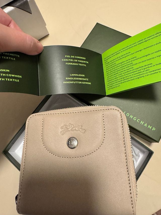 Monedero Longchamp Piel Beige Nuevo