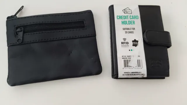Monedero y Tarjetero Negro Cuero RFID