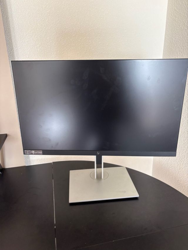 Monitor HP con diseño elegante y moderno. - Pantalla de alta resolución. - Base plateada. - Tecnología Eye Ease.