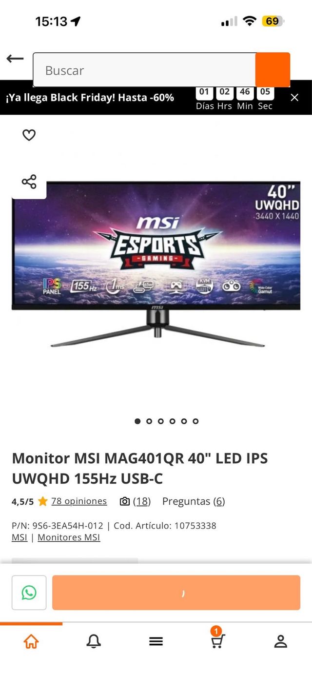 Como nuevo · MSI · Negro