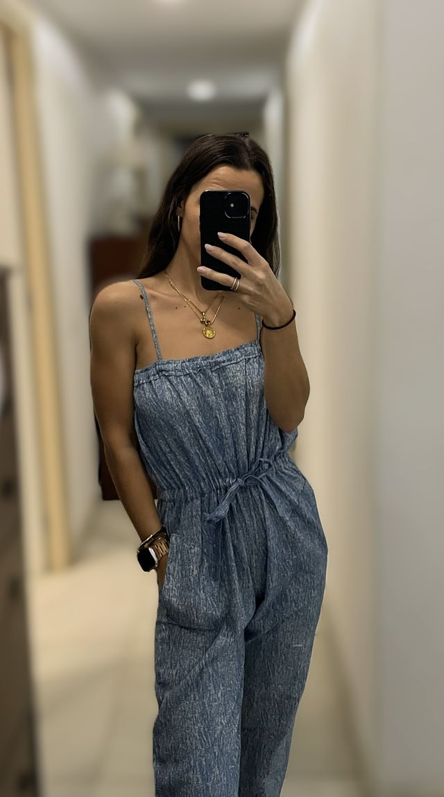 Mono azul de tirantes con cinturón