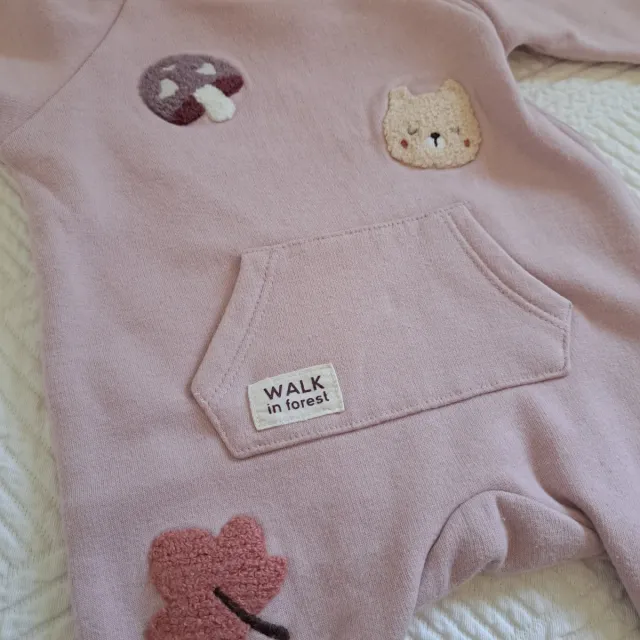 - Estampado de un osito, un hongo y una hoja.