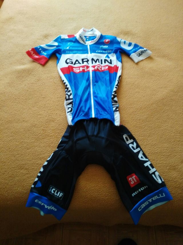 Detalles del productoSkinsuit Castelli San Remo original del equipo Garmin. Pertenecía a uno de los corredores. Yo lo compré en Girona y me lo habré puesto 2 o 3 veces. En perfecto estado, casi nuevo. Muy ligero y transpirable. Culotte con badana progetto x2. Maillot con tres bolsillos detrás y un bolsillo para la radio.