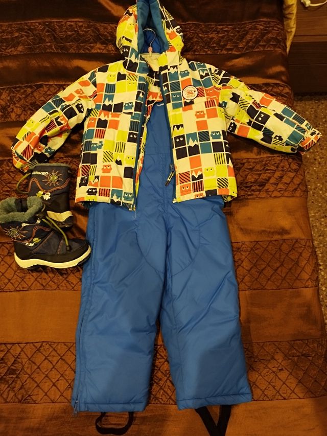 Mono y chaqueta talla 4 años (98-104) todo forrado por dentro. Botas nieve niño talla 26 con forro interior
