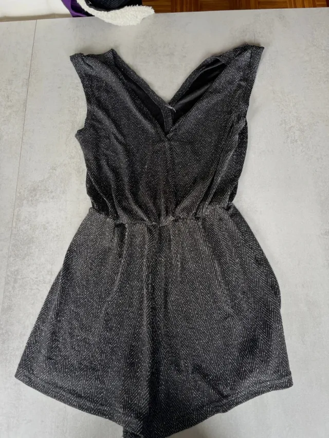 Detalles del productoMono corto con un tejido brillante, ideal para eventos o salidas nocturnas.