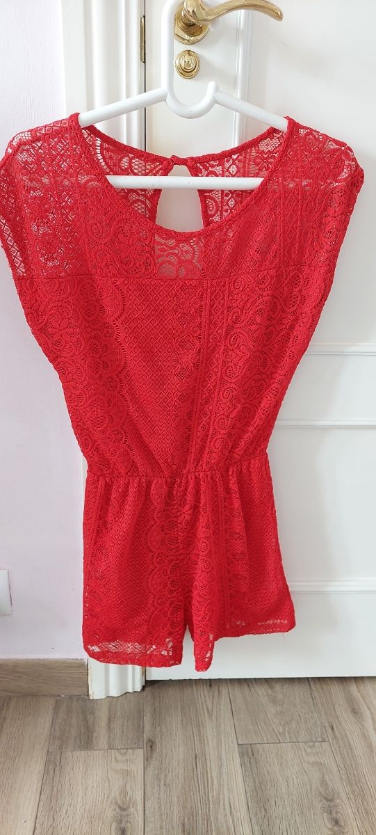 Mono corto de encaje rojo