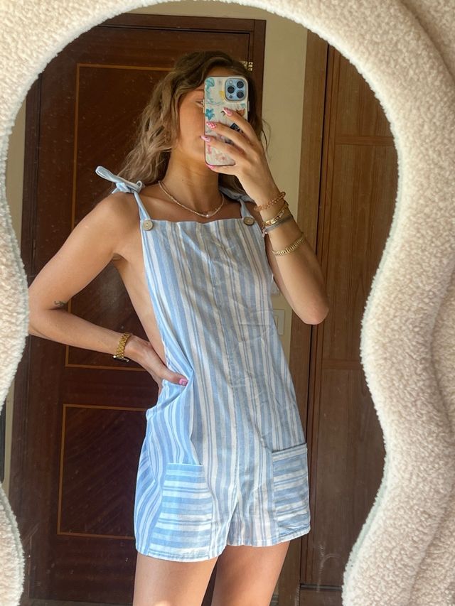 Como nuevo · L / 40 / 12 · Mariposa Morada · Azul y Blanco