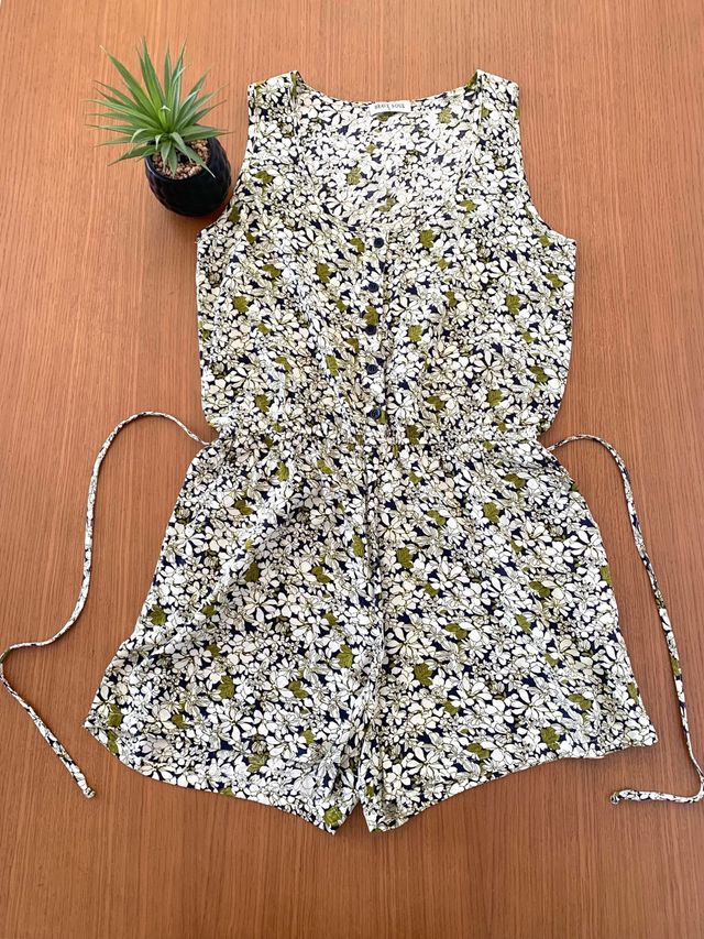 Detalles del productoMono corto estampado de verano Brave Soul. Cintura elástica con cordón. Abotonado en la parte delantera. Medidas: 40cm de sisa y 77cm de largo. Talla S. Nuevo, lavado pero no se llegó a estrenar. NO NEGOCIABLE.