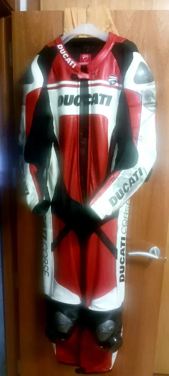 Detalles del productoMono de cuero Dainese para moto, con diseño Ducati. Alguna pequeña rascada sin dañar el cuero.