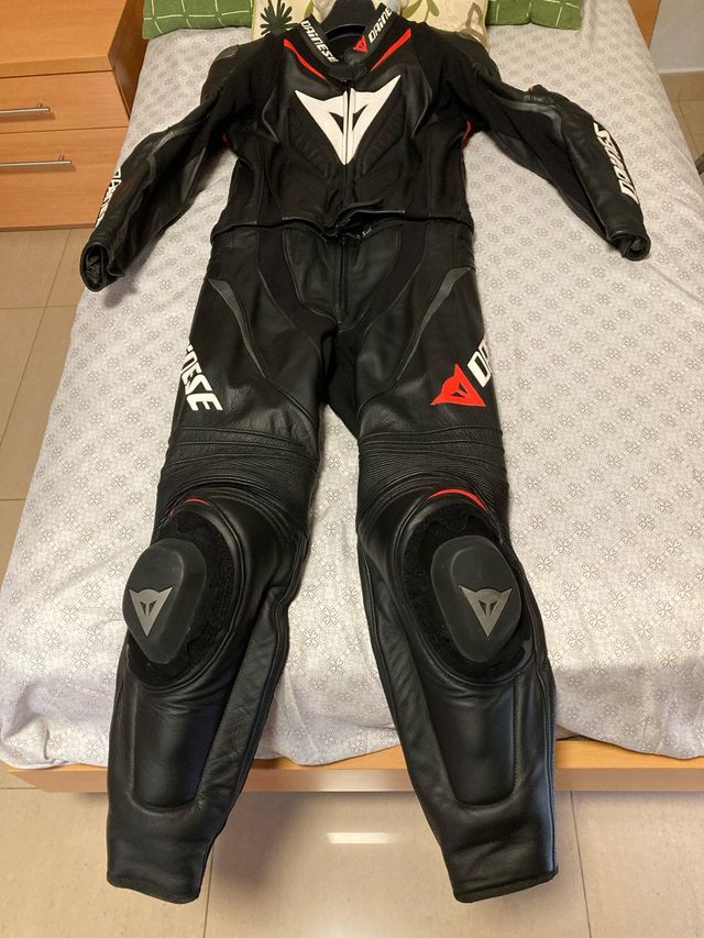 Detalles del productoMono de cuero Dainese en talla 50. Ideal para motociclismo.
