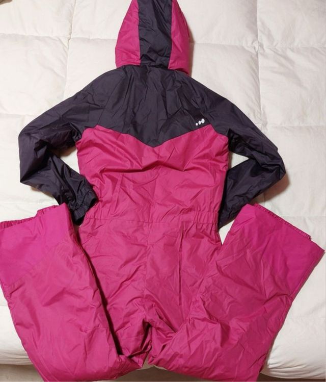 Mono de esquí para niña, talla 12 años. Ideal para disfrutar de la nieve. - Color fucsia y negro. - Capucha. - Cremallera frontal.