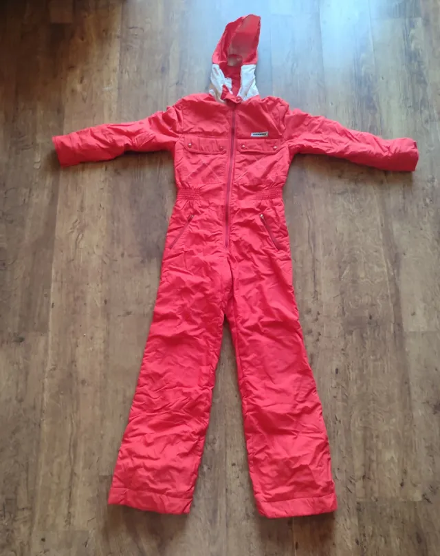 Mono de esquí de color rojo, talla 42. Ideal para disfrutar de la nieve con comodidad. - Diseño con capucha. - Cierre de cremallera frontal. - Bolsillos en la parte superior.