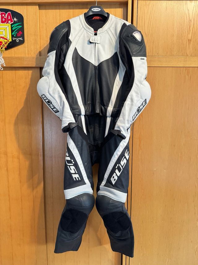 Detalles del productoMono de moto de dos piezas de la marca Büse, confeccionado en piel.