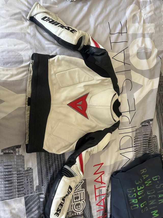Detalles del productoTraje de moto de 2 piezas Dainese talla 58 en buen estado nunca a tenido caídas ni arrastrones solo lo e utilizado en 6 salidas aproximado y para ir a los grandes premios de España el bollo que se ve en la foto es de una pequeña caída