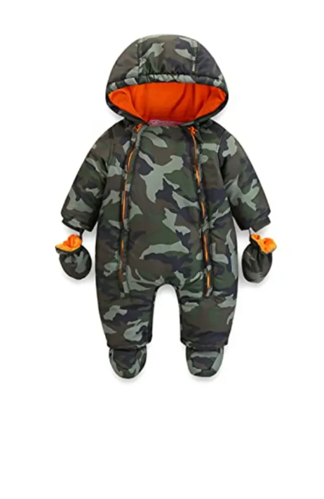 Detalles del productoMono de nieve con estampado de camuflaje para mantener a los más pequeños abrigados.